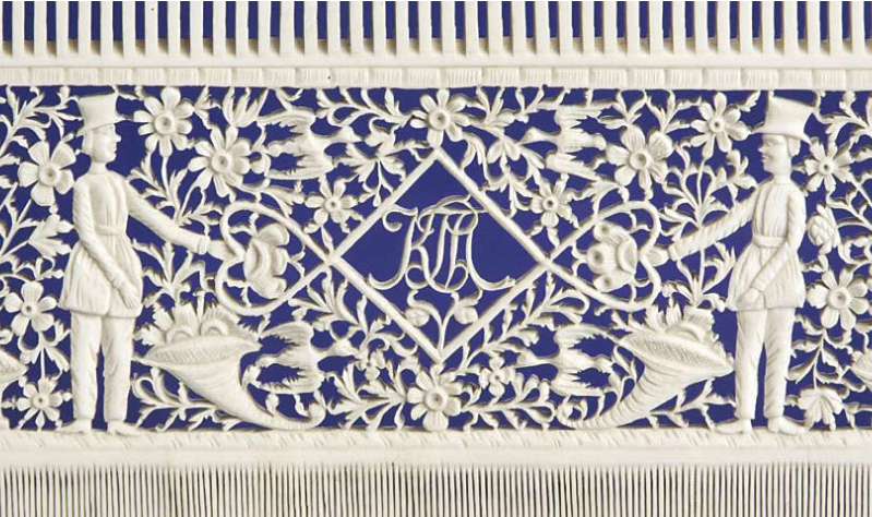 Большие костяные гребни из мамонтового бивня с частыми и редкими зубцами служили свадебными подарками. Рассказывают, что в XVIII в. под Архангельском стоял солдатский полк, а в порт приходилимногочисленные корабли, поэтому в город матушки привозили дочерей на выданье. Резьба подарочных гребней получила массовое распространение. Хорошо расходились они как в провинции, так и в столице, где мастера или заказчики придумывали свои сюжеты.