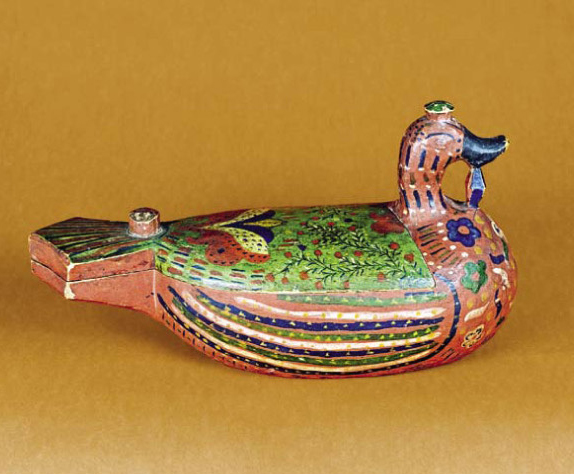 Другой вид солонок – типичный для русского севера, вологодской и архангельской губерний. Это солонка в форме плывущей птицы с головой уточки (такую солонку называли «утица», «утка» или «куричка»). Утицу воспринимали как символ семейного счастья и благополучия. Такую солонку выдалбливали из одного куска дерева. Ручкой служил хвост или голова птицы, выдвижная крышка-спинка крепилась на деревянном штырьке и украшалась одной или несколькими птицами.