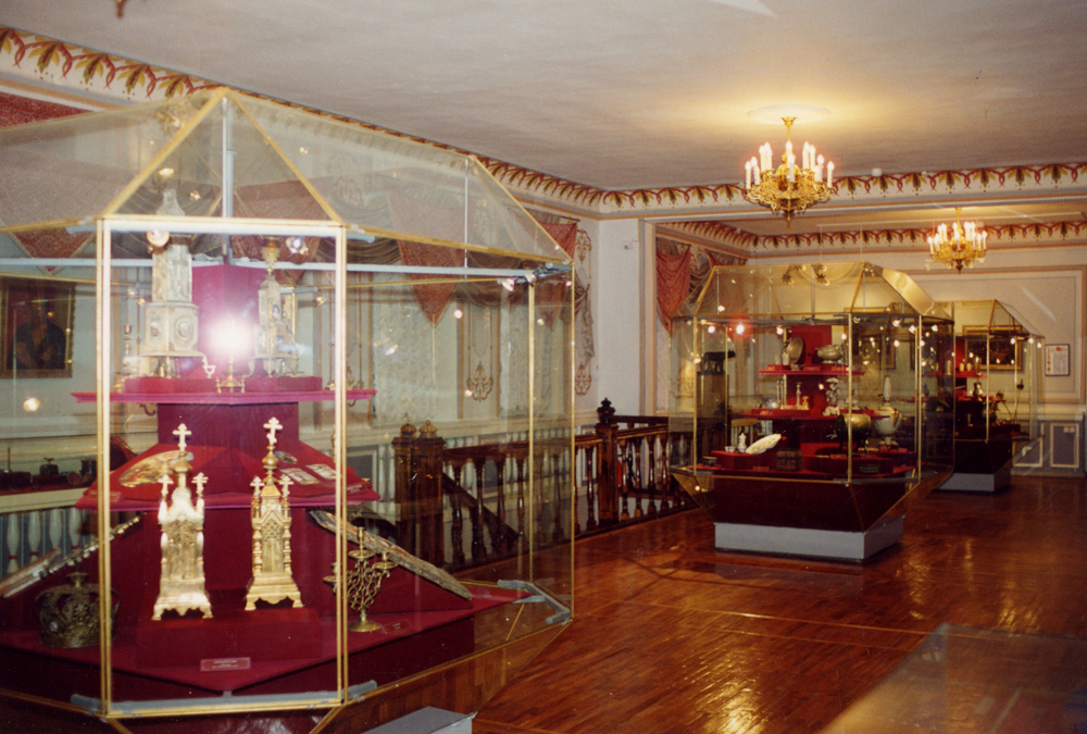 В музее представлены лучшие образцы основных центров отечественного художественного металла XVIII-XIX вв. Медные изделия уральских заводов Демидовых и Осокиных XVIII в. (кувшины, стопы, братины, магниты) неизменно привлекают внимание пышным чеканным и гравированным декором. С традиционным укладом русской жизни связаны изделия черного металла: сечки, безмены, за мки и пр. Предметы, предназначенные для бытового использования, отличает высокий уровень художественного мастерства. В немногих музейных собраниях есть оловянная посуда. В XVII в. ею сервировали царские и патриаршие приемы наряду с золотой и серебряной. Мягкий металл легко гравировался и чеканился, что позволяло создавать вещи гармоничные по форме и декору. Изделия тульских мастеров XVIII-XIX вв. встречались в убранстве многих дворцов. Светильники, швейки, шкатулки из полированной стали с позолоченной инкрустацией будто покрыты изысканной вуалью. Причудливы крошечные замочки в виде лошадок и скоморохов, выполненные «левшами» в селе Павлово-на-Оке. Они смогли выковать цепочку из едва различимых замочков и ключиков. В музее можно увидеть вещи из Великого Устюга и Сольвычегодска, обитые просечным железом, эмалированную посуду с металлическими накладками (завод Попова), расписные подносы из Нижнего Тагила, Каслинское литье из чугуна. Традиционным центром живописной эмали (или финифти) был Ростов Великий, мастеров которого отличала приверженность к яркой цветовой палитре, светлой мажорной тональности. В коллекции мелкой пластики часть образков и крестов отлиты с матриц XII-XVII вв. в Москве и на севере России. Складень XIX в. «Спас Смоленский избранные святые» отлит гуслицкими старообрядцами. |