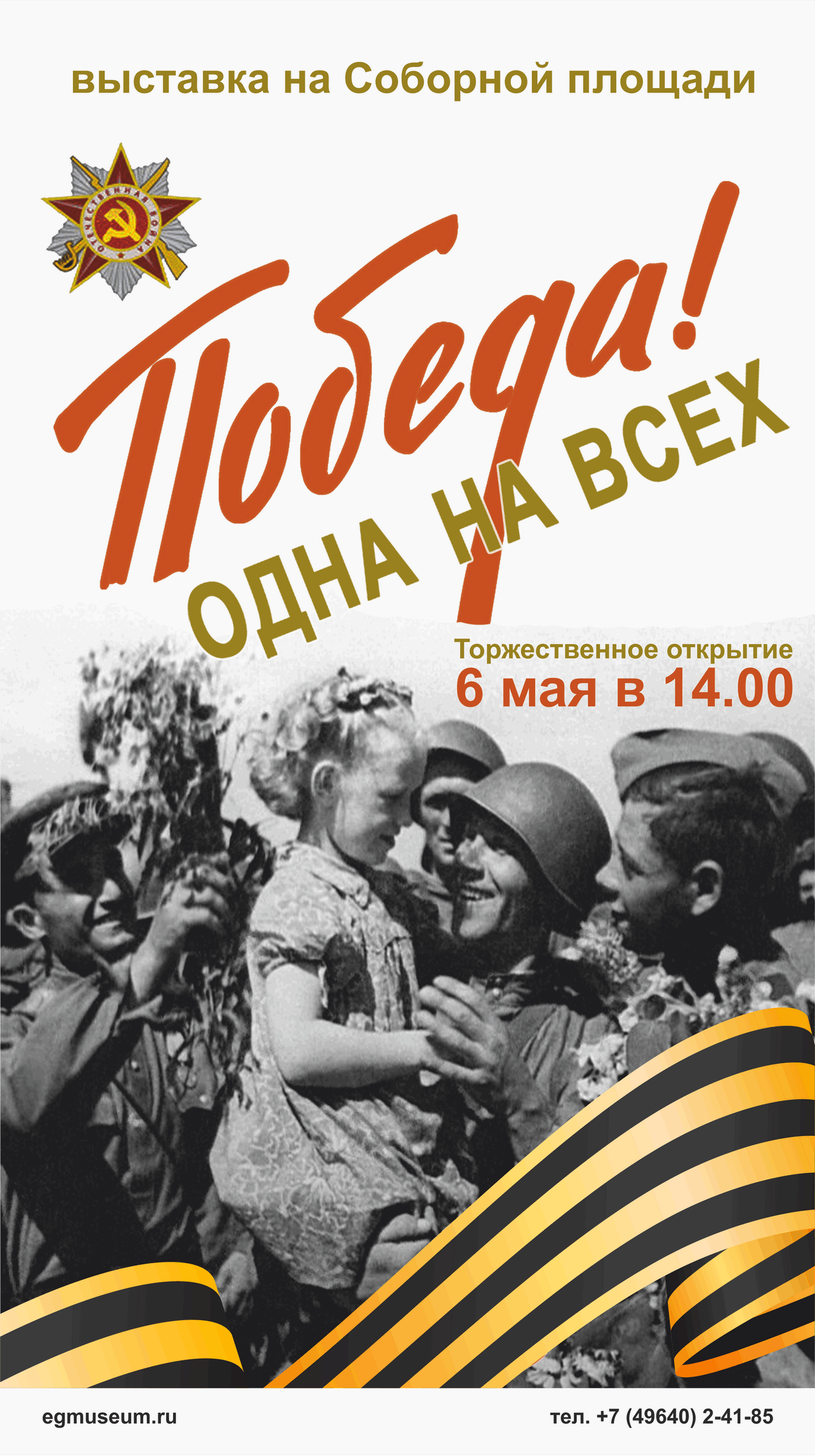 6 мая на Соборной площади начинает работу выставка «Победа! Одна на всех…», посвященная юбилею Великой Победы.