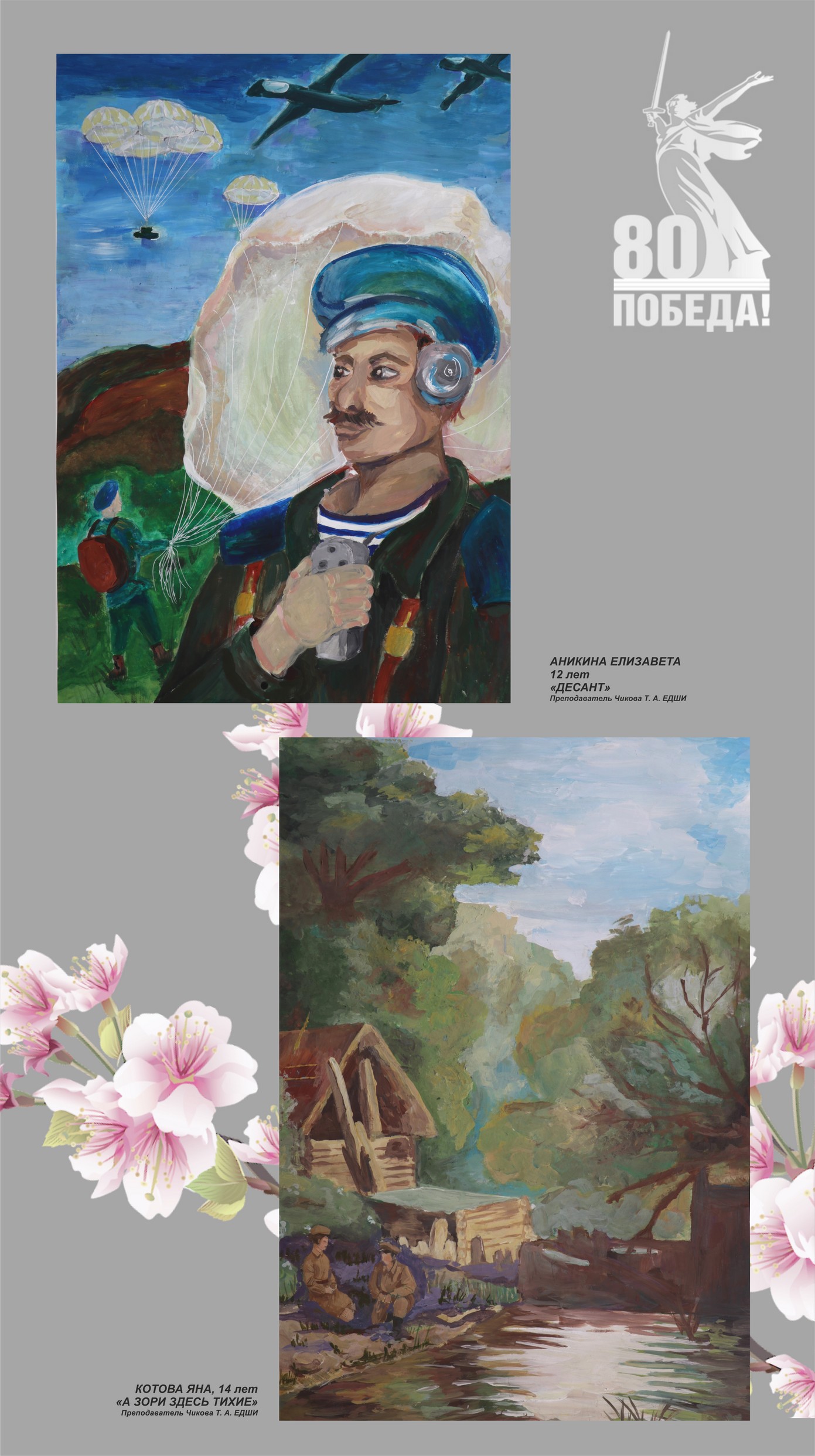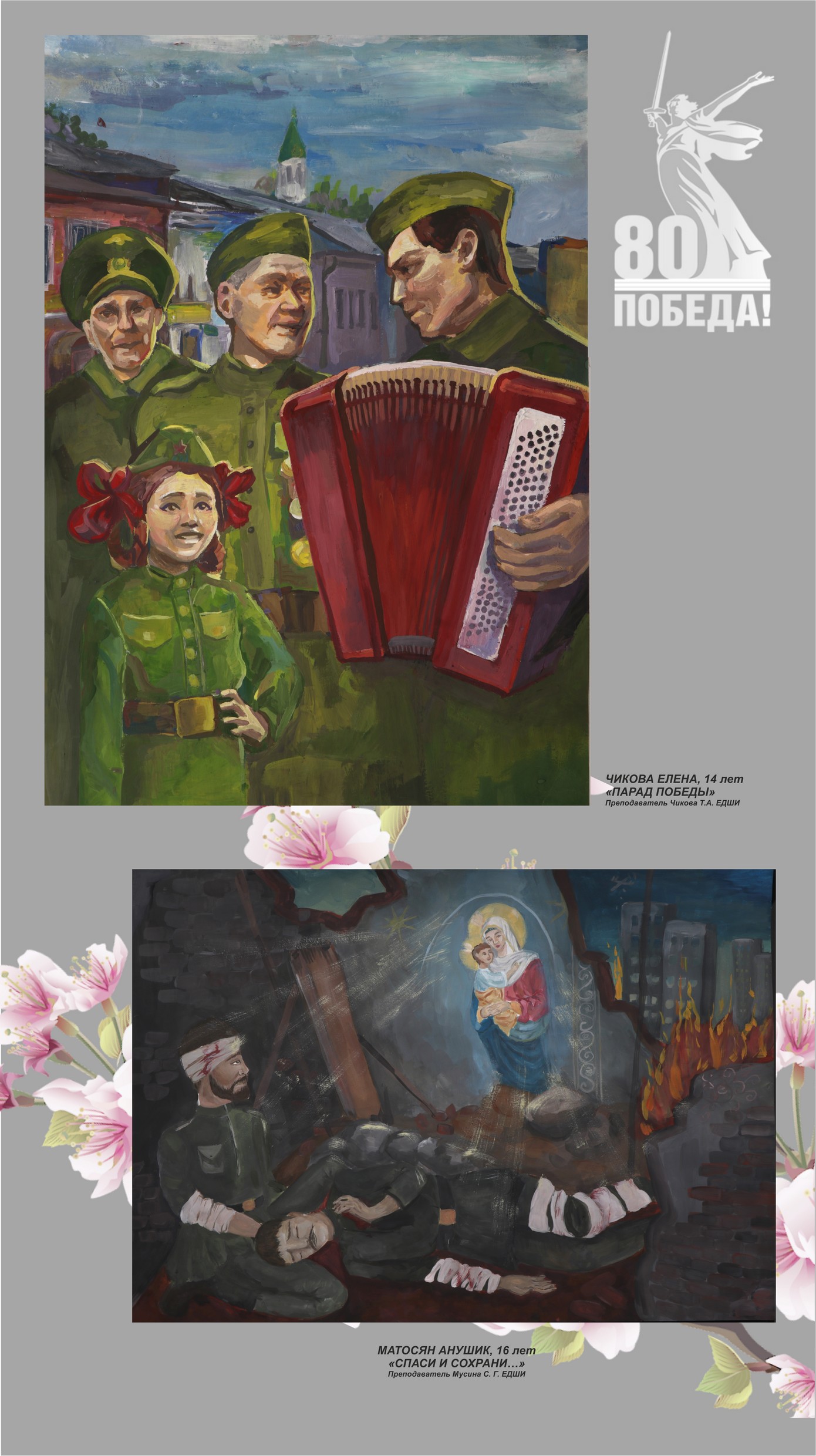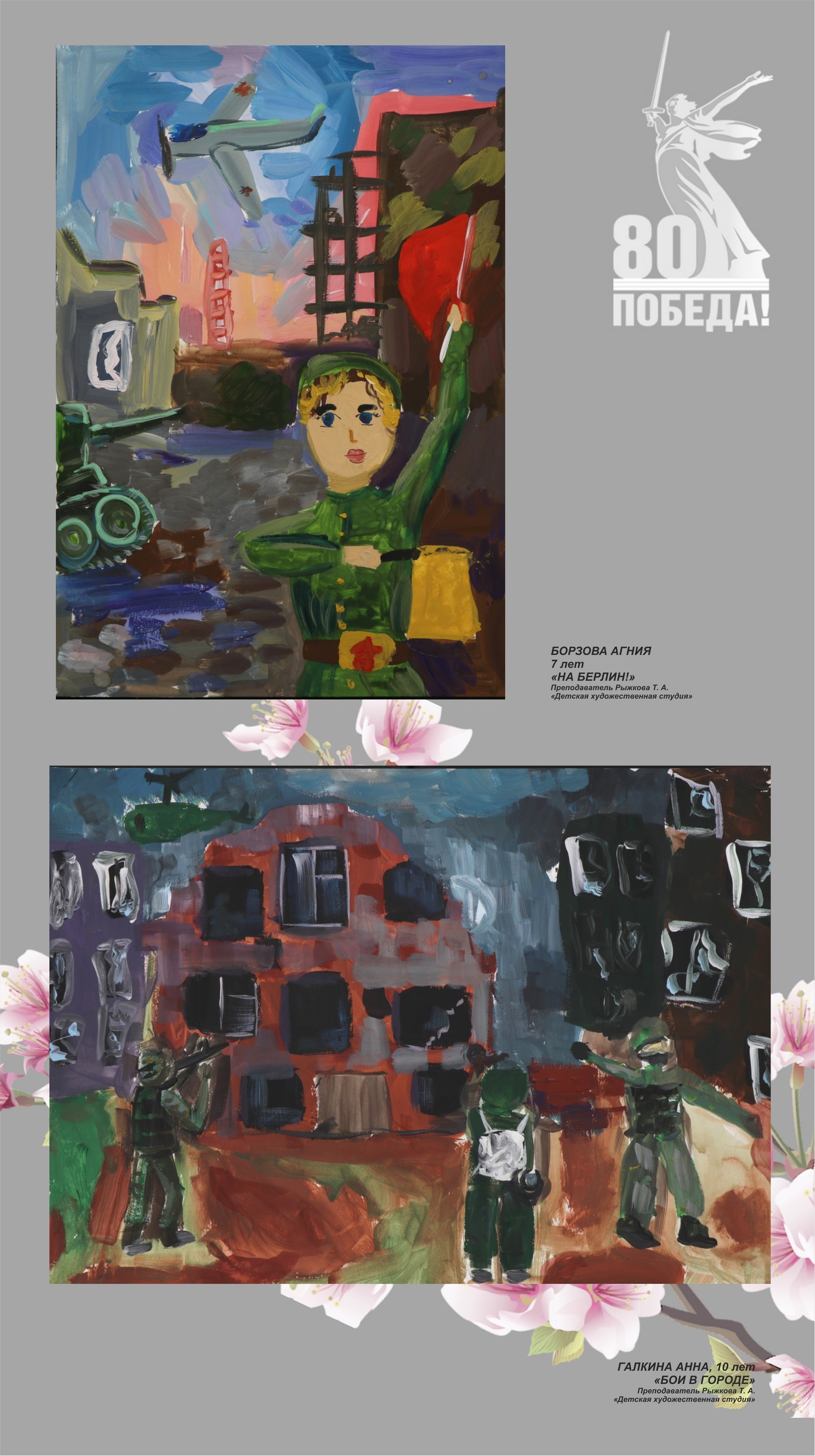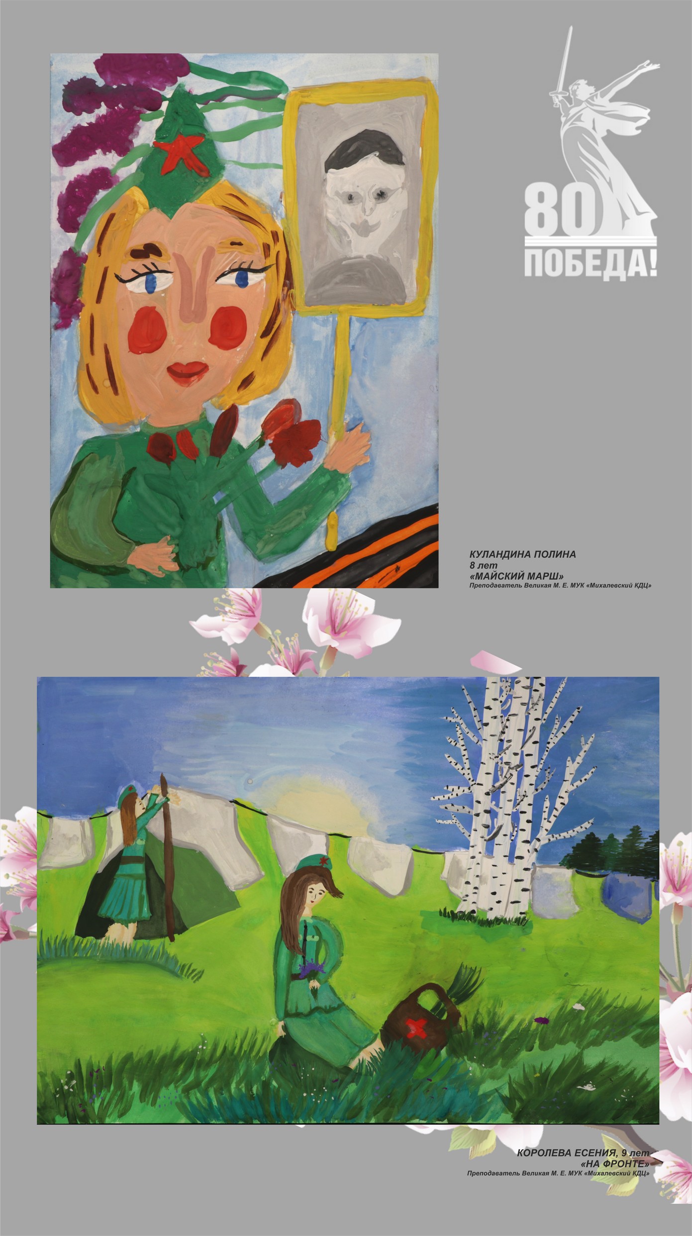 Выставку дополнили детские рисунки, — искренние и непосредственные. Они рассказывают о том, какой ценой досталась Победа, о необходимости сохранения памяти о людях, отстоявших нашу свободу, заставляют задуматься о ценности жизни и о том, как важно сохранить мир на земле.
