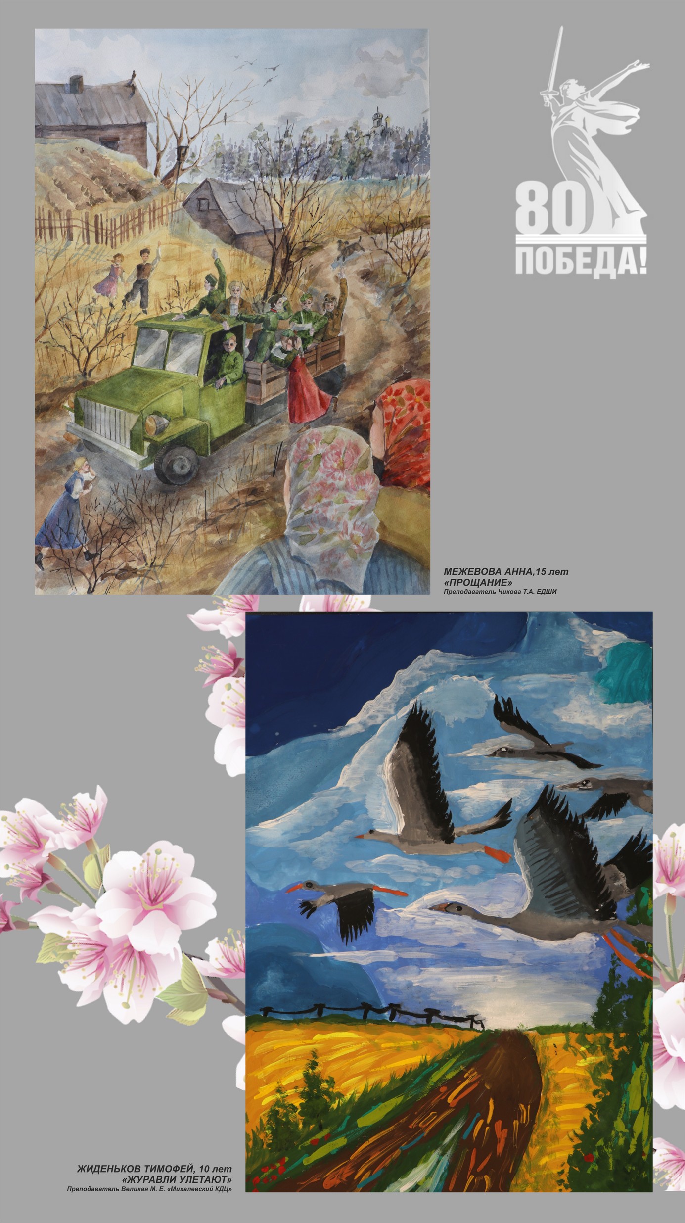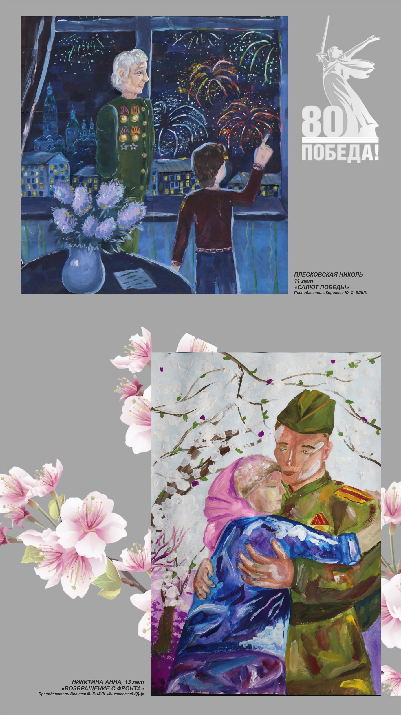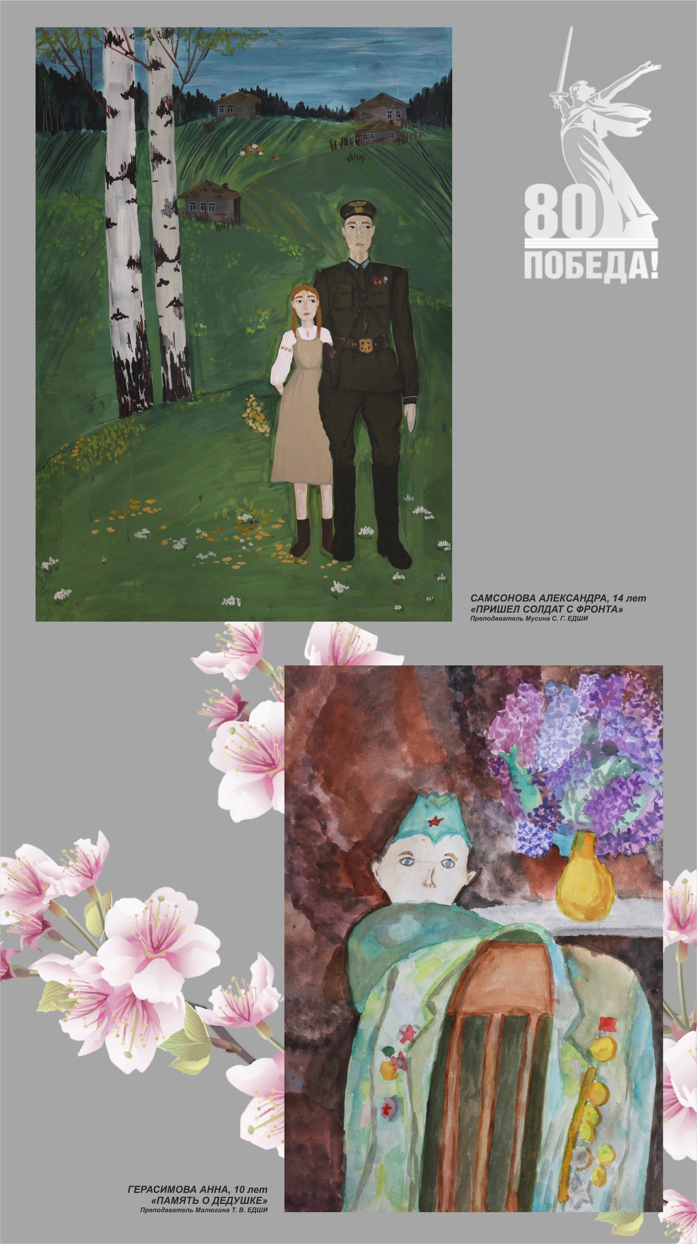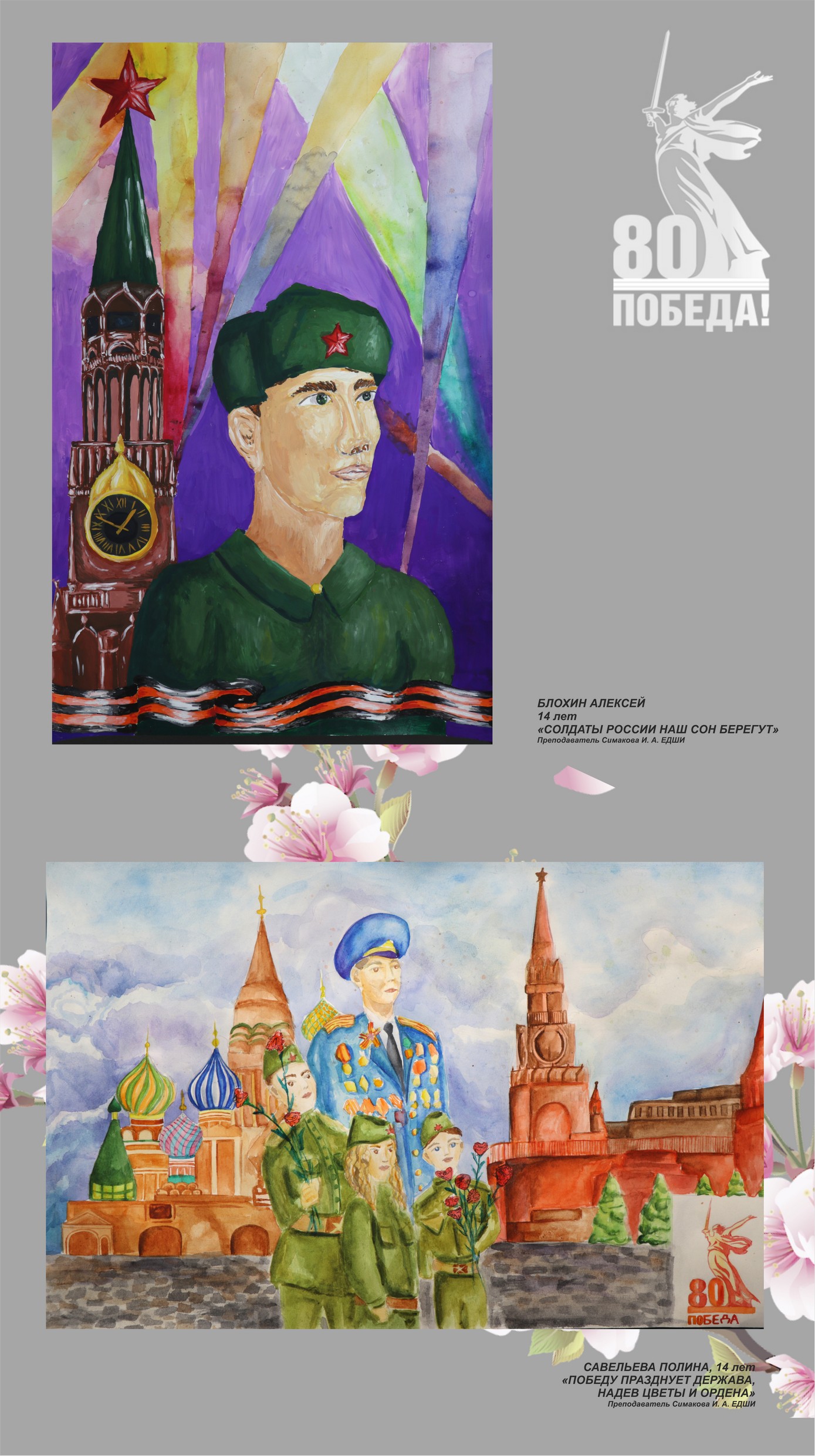 Выставку дополнили детские рисунки, — искренние и непосредственные. Они рассказывают о том, какой ценой досталась Победа, о необходимости сохранения памяти о людях, отстоявших нашу свободу, заставляют задуматься о ценности жизни и о том, как важно сохранить мир на земле.